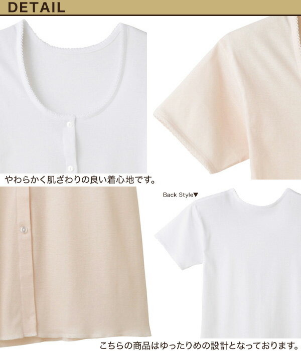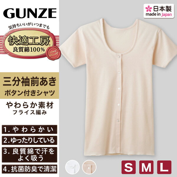 グンゼ 快適工房 婦人 半袖ボタン付き 前開きシャツ S〜L (レディース 3分袖 GUNZE 綿100% コットン 女性 下着 肌着 インナー 白 ベージュ 日本製 S M L)【取寄せ】