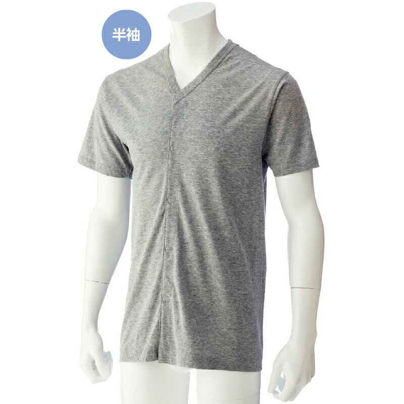 ワンタッチ肌着 下着 前開き メンズ 紳士 用 綿100% 介護 マジックテープ式 半袖 Vネック M L LL 春夏 介護用 肌着 介護下着 シャツ 高齢者 男性 シニア