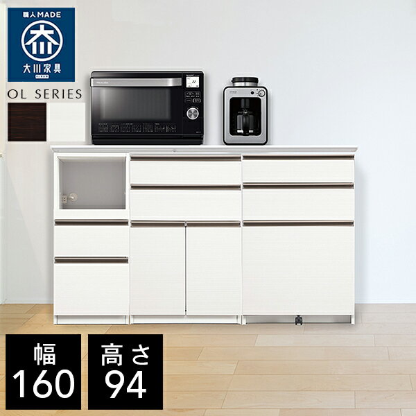 【開梱設置送料無料】 OL キッチンカウンター 幅160cm ゴミ箱 ダスト キッチンカウンター 160 キッチンカウンター 160幅 ホワイト 完成品 国産 大川家具 日本製 レンジ台 完成品 ハイタイプ