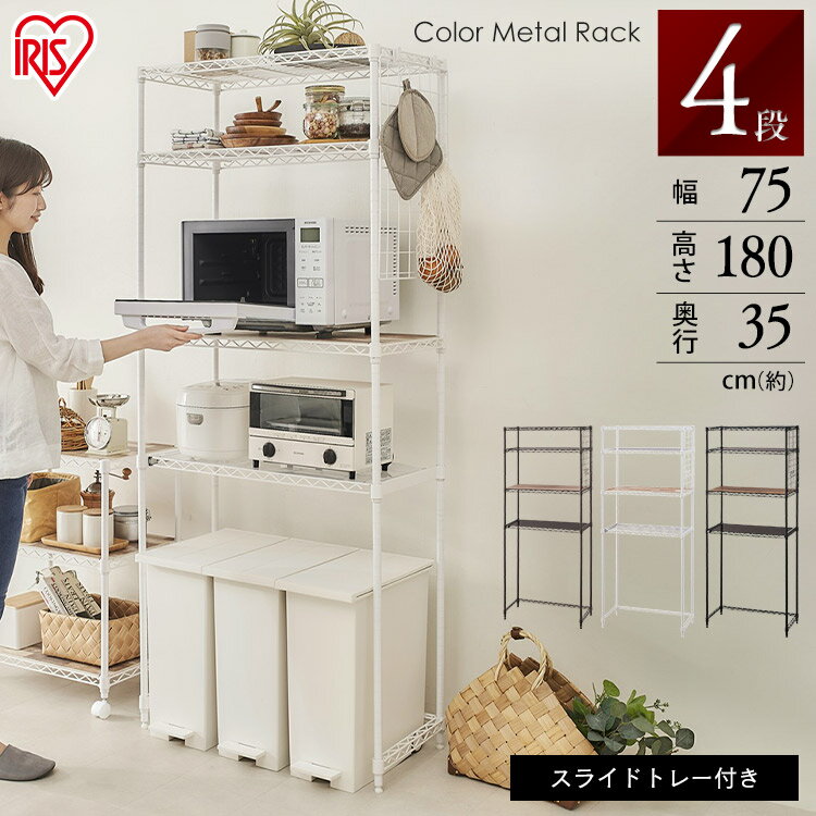 レンジラック レンジ台 ゴミ箱 収納 キッチンラック レンジボード レンジラック ゴミ箱上ラック メタルラック カラーメタルラック ペール上ラック ハイタイプ CMM-PRH7518送料無料 カラー 台所 収納 棚 アイリスオーヤマ