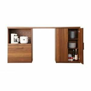 ■6.5倍ポイント■日本製完成品 天然木調ワイドキッチンカウンター Walkit ウォルキット 幅180 レンジ台+食器棚(幅広ゴミ箱収納付)[1D][00]