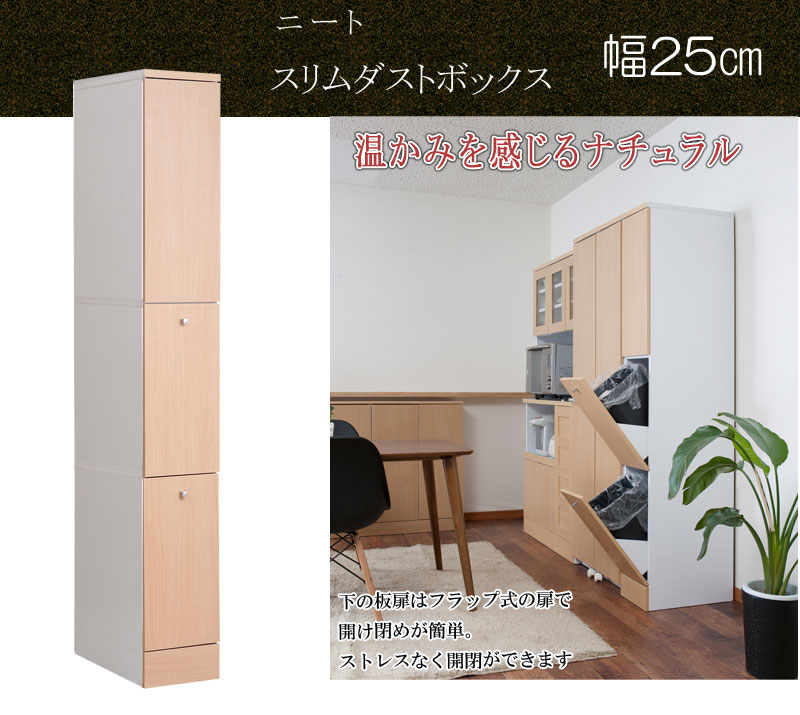 ■商品の仕様/前板:強化プリント紙化粧繊維板、その他:プリント紙化粧繊維板(傷に強い樹脂コート加工)■商品サイズ/本体:(約)幅25×奥行45×高さ179.5cm、扉内内寸:(約)幅21.5×奥行41.5×高さ63cm■可動棚/3枚(3cmピッチ×11段階)■耐荷重量/可動棚:(約)5kg■商品重量/(約)30kg■中国製■組立品(組立て所要時間:約60分) バリエーション ◇カップボード 幅90 ホワイト ◇カップボード 幅90 ナチュラル ◇カップボード 幅90 ダークブラウン ◇キッチンストッカー 幅60 ホワイト ◇キッチンストッカー 幅60 ナチュラル ◇キッチンストッカー 幅60 ダークブラウン ◇スリムダスト 2分別 ホワイト ◇スリムダスト 2分別 ナチュラル ◇スリムダスト 2分別 ダークブラウン ◇カウンター下 チェスト ホワイト ◇カウンター下 チェスト ナチュラル ◇カウンター下 チェスト ダークブラウン ◇カウンター下 幅60cm扉 ホワイト ◇カウンター下 幅60cm扉 ナチュラル ◇カウンター下 幅60cm扉 ダークブラウン ◇カウンター下 幅90cm扉 ホワイト ◇カウンター下 幅90cm扉 ナチュラル ◇カウンター下 幅90cm扉 ダークブラウン ◇カウンター下 幅112cm扉 ホワイト ◇カウンター下 幅112cm扉 ナチュラル ◇カウンター下 幅112cm扉 ダークブラウン ◇カウンター下デスク ホワイト ◇カウンター下デスク ナチュラル ◇カウンター下デスク ダークブラウン ◇3分別 ダストボックス ホワイト ◇3分別 ダストボックス ナチュラル ◇3分別 ダストボックス ダークブラウン ◇5分別 ダストボックス ホワイト ◇5分別 ダストボックス ナチュラル ◇5分別 ダストボックス ダークブラウン ▲上記をクリックして、各ページをご覧いただけます ■送料 送料無料 北海道・沖縄・離島・東北(青森・岩手・秋田・宮城・山形・福島)を含む(一部配送不可地域)のご注文は配達不可のためキャンセルさせて頂きます。